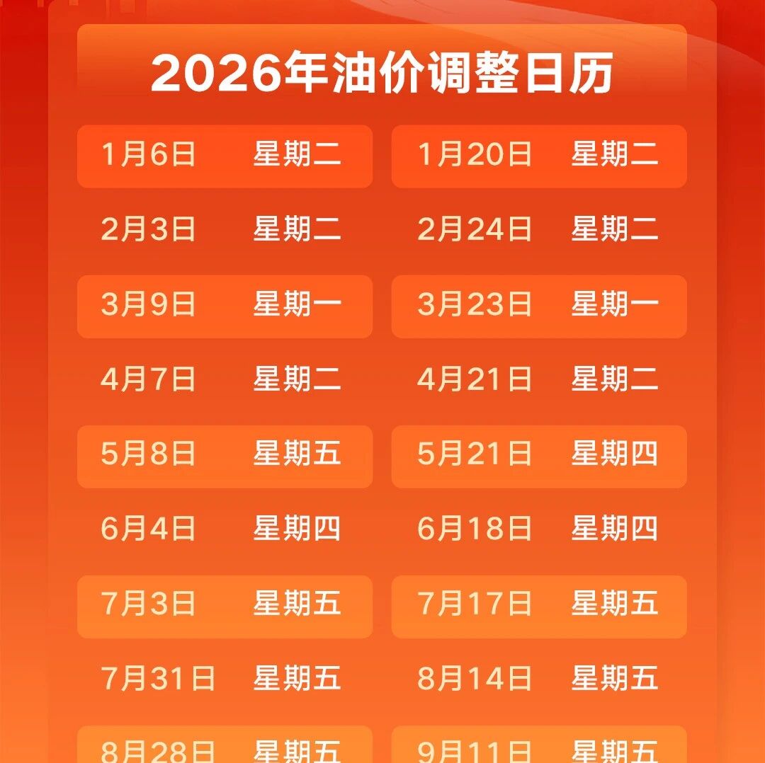 本年度油价调整日历