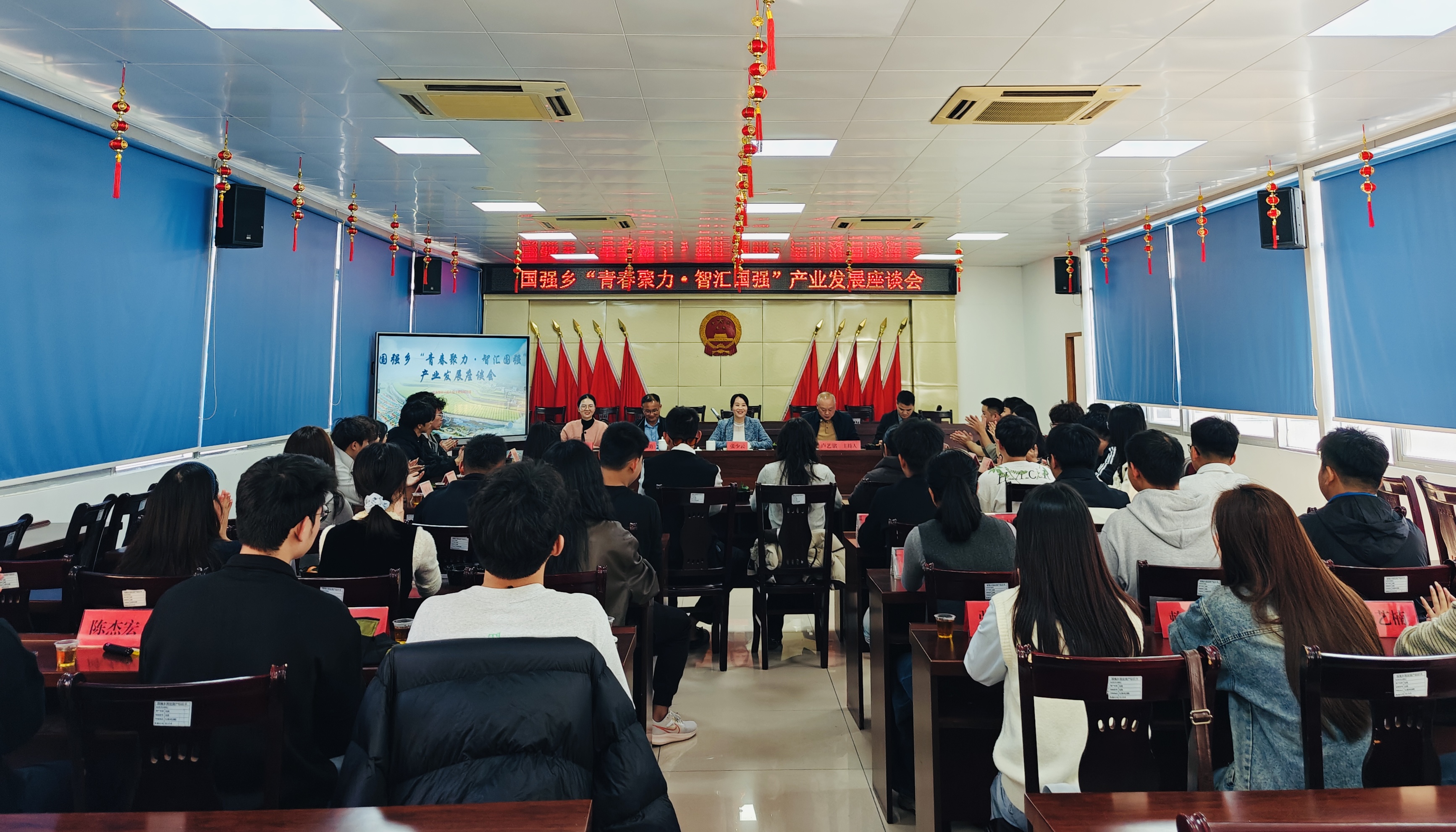 福建日报-新福建客户端2月13日讯(通讯员 卢艺婷 林锦涛)2月12日下午,平和国强乡“青春聚力·智汇国强”产业发展座谈会顺利举行。乡党委书记张少云、乡长卢艺铭、乡人大主席蔡小勇、乡党委副书记林灿源、乡党委组织委员张艺芳等班子成员,与在读大学生代表、返乡青年党支部党员代表、各村青年代表共36人齐聚一堂,共叙乡情、共话发展。