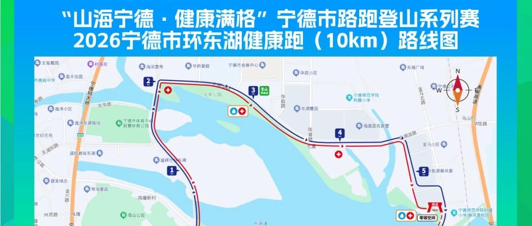 “山海宁德 健康满格”路跑登山系列赛——2026宁德市环东湖健康跑从宁德市南岸公园起跑,赛道沿途不仅有东湖万顷碧波、湿地飞鸟的生态盛景,更串联金蛇头渔村的文创风情与非遗文化展示。