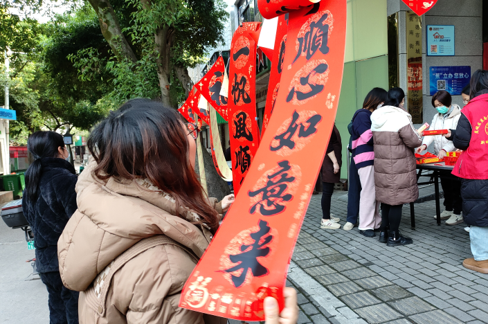 翰墨飘香,送福上门。写春联、送祝福成为各社区迎新春的“标配”。东湖社区邀请市书法协会老师现场挥毫,桥头下社区联动多家共建单位定制春联,万达、南际、芦坪、小场、下宅园等社区也纷纷组织书法爱好者为居民书写吉祥对联和“福”字。许多活动还设有“小小书法家”体验区,让孩子们在笔墨中感受传统文化魅力。