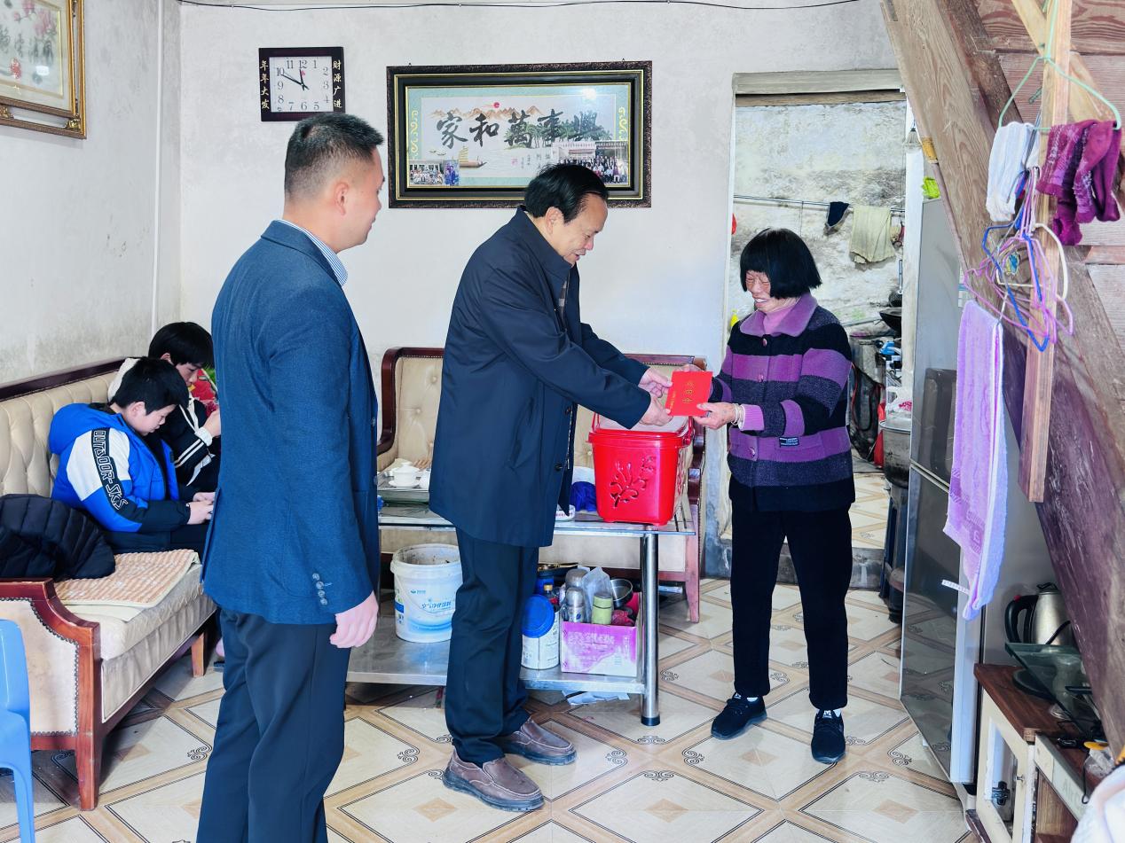 当天、村党支部书记、村委会主任赖文达带队,县委党校派驻村第一书记郑伟龙、返乡贤达与村两委干部一同,走访了村里的老党员、困难群众和高龄老人。每到一户,慰问组都送上慰问金和粮油、被褥等生活物资,大伙围坐在一起,唠着家常,细数村里一年来的新变化。