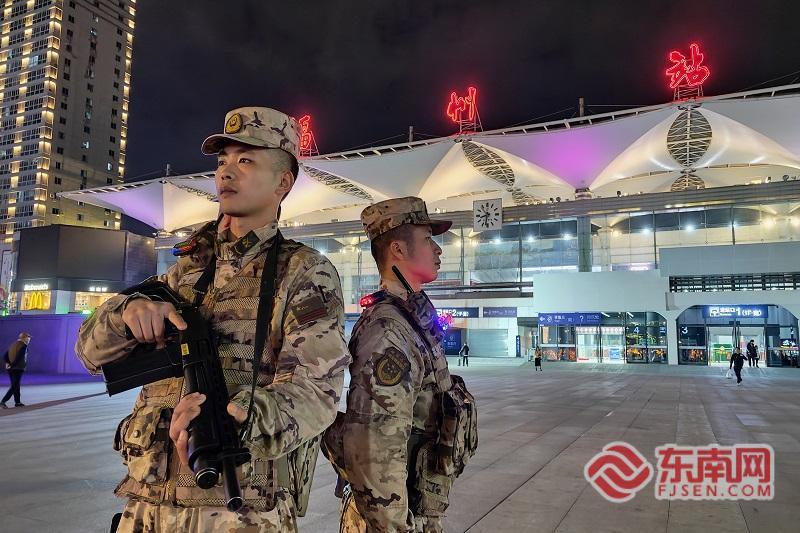武警官兵在福州火车站外执勤。武警福州支队供图