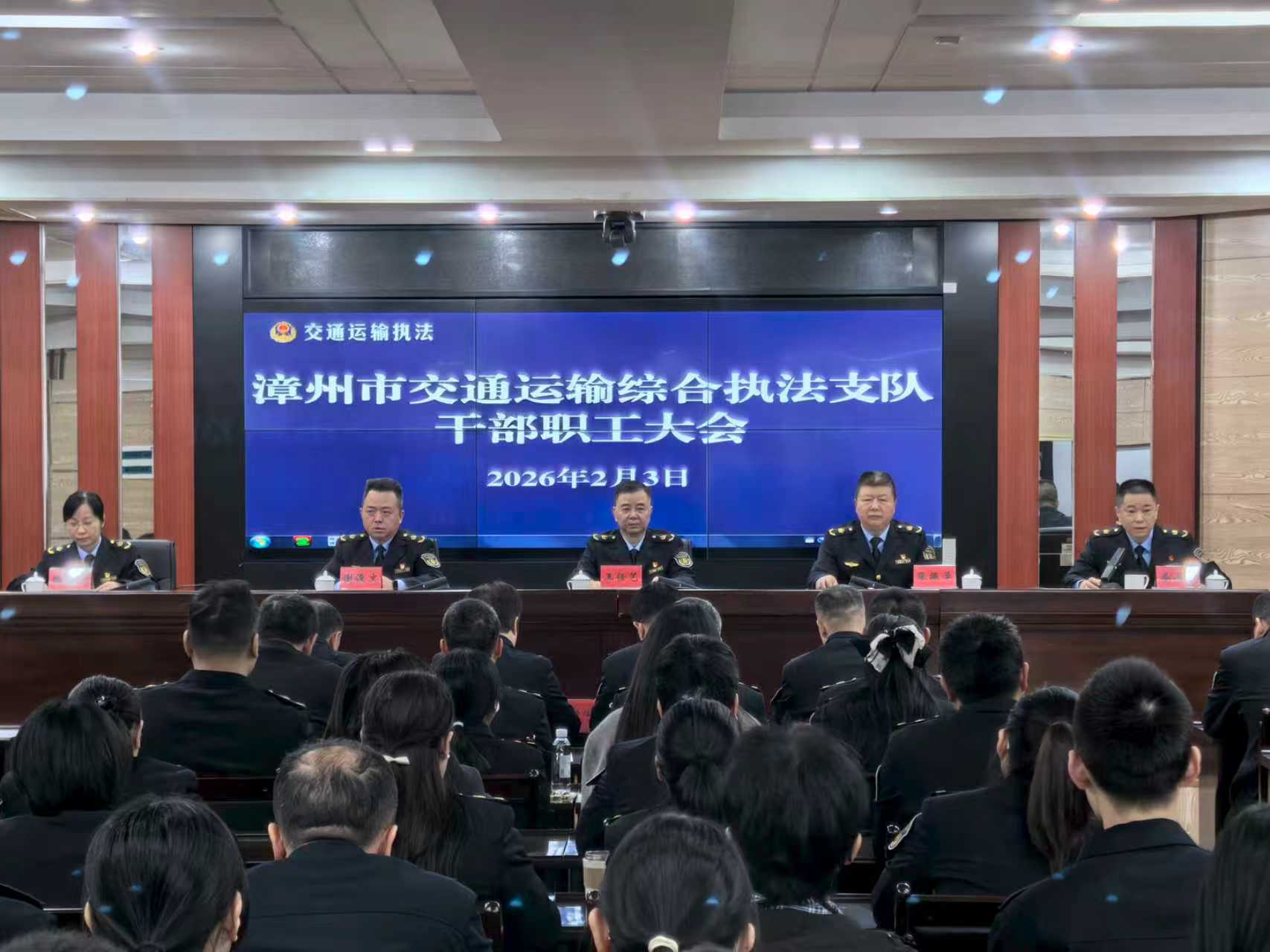 岁末年初,为全面贯彻落实漳州市交通运输局2026年工作报告中坚持底线思维,筑牢安全发展防线的核心任务,精准对接全市交通运输重点工作部署,漳州市交通运输综合执法支队近日召开全体干部职工大会。会议聚焦春运执法保障与年度重点任务,以“动员誓师”姿态推动上级部署落地见效,为全年交通运输执法工作谋好篇、布好局。