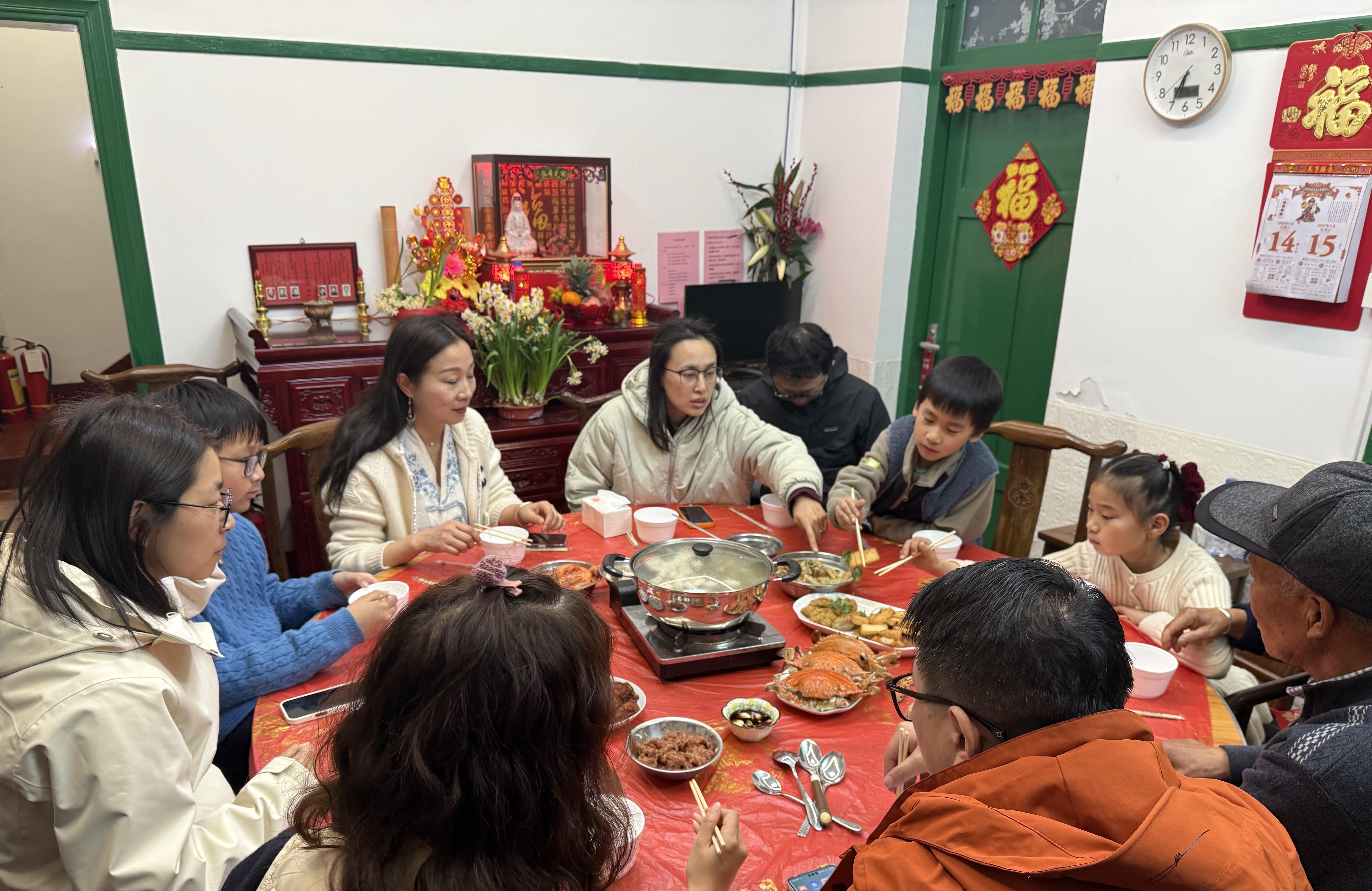 来自五湖四海的游客在民宿共吃年夜饭,在泉州感受过年的味道。