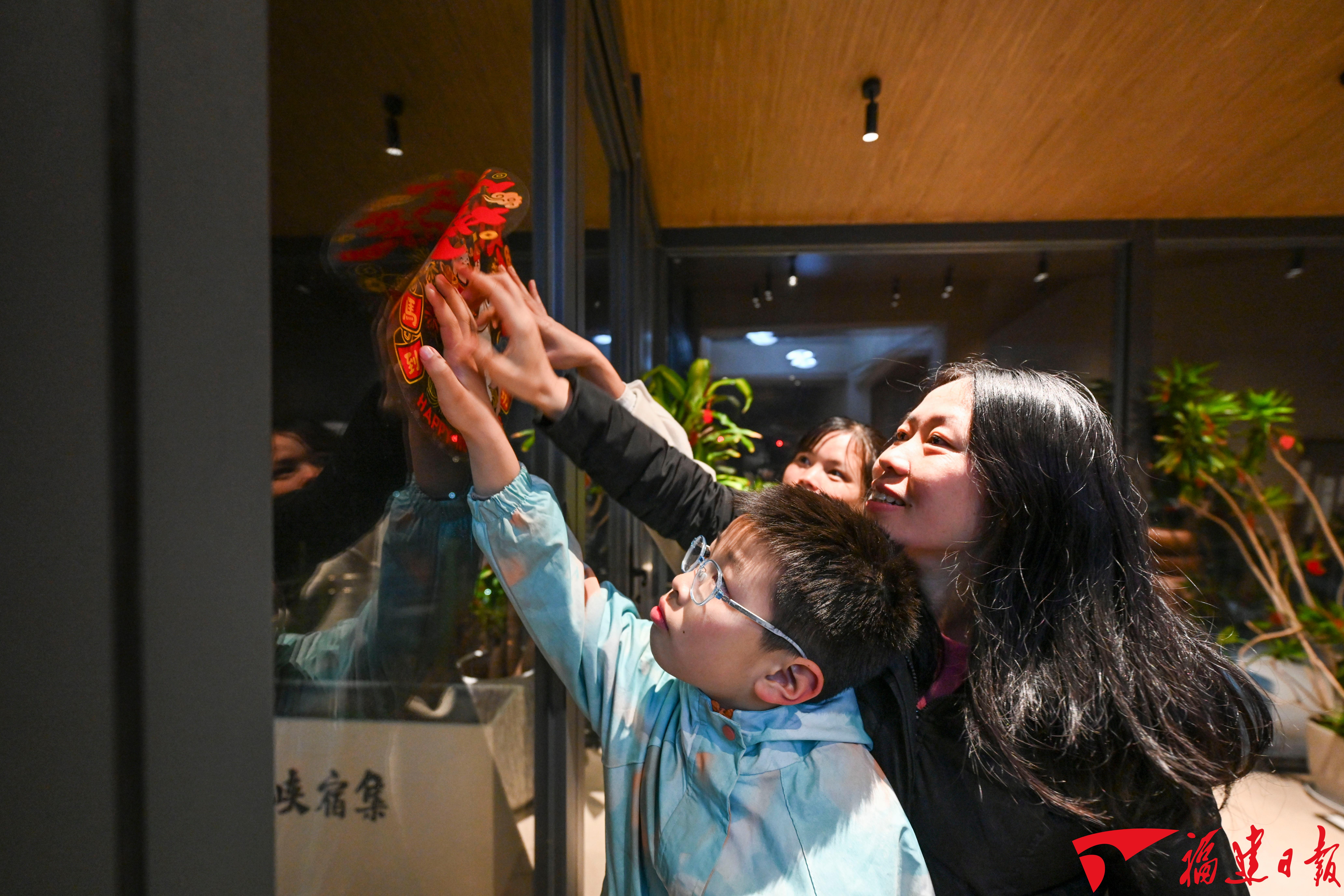 “大家注意看,剪刀要从这里往里走,纸才不会破。”在民宿公共区域,游凯旭摇身一变,成了大伙的“年俗技艺指导员”,耐心地教游客剪窗花、制作贝雕、写春联,为住客打造沉浸式的手作体验。