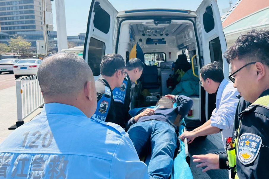2月15日12时许,晋江市内坑动车站正值午间客流高峰,一名群众神色慌张地向正在常态化巡逻的巡特警大队执勤人员求助,称停车场有人晕倒出血。警情就是命令,特警队员立即携带急救箱赶赴现场,发现一名中年男子倒在地面,头部出血、意识模糊。队员们沉着分工,一人用纱布按压止血,一人跪地呼喊患者确保他有意识,同时报备指挥中心调度120、通知属地派出所协同处置。在队员们的守护下,男子逐渐恢复意识,成功脱离危险。据悉,该男子驱车来接亲戚时突发不适晕厥,头部撞到地面受伤。