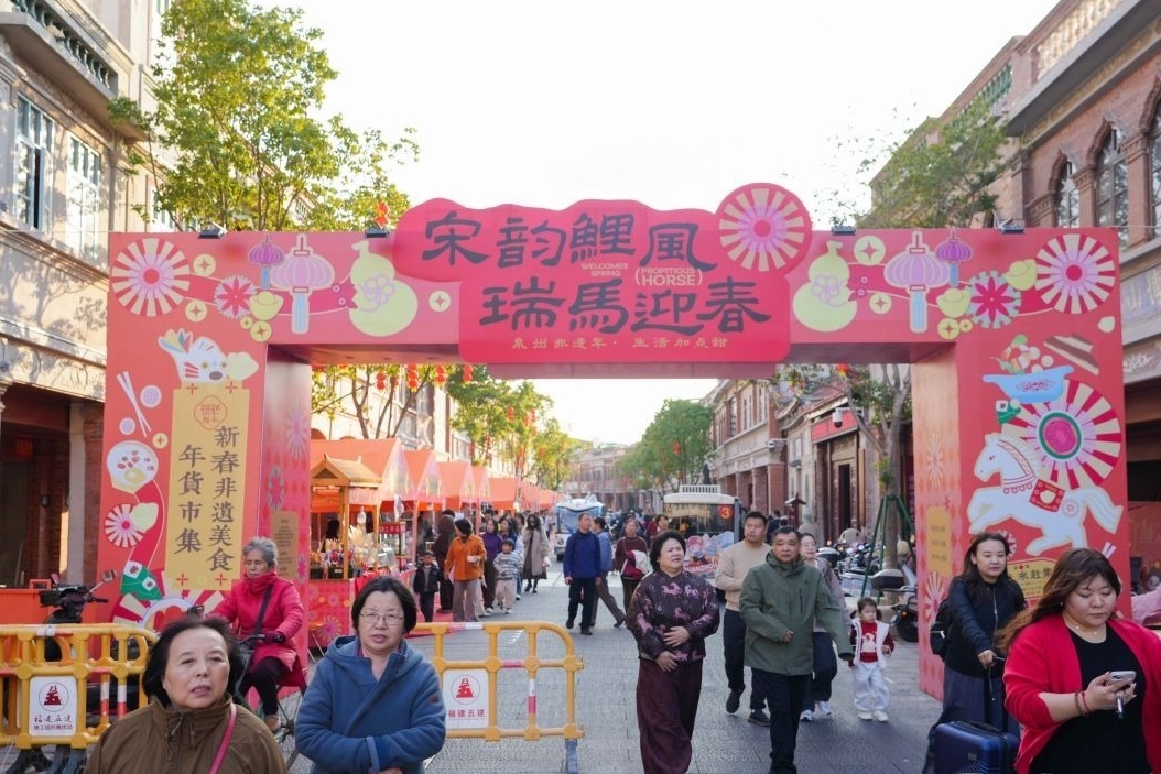 为丰富新春体验,市集还特别打造“马年添喜·互动集福”板块,现场设置互动手工工坊,市民游客能够上手写福字、写春联,体验传统年俗;欢乐套圈等趣味游戏同步开启,让大人小孩都能在互动中收获满满福气与快乐,感受纯粹的闽南年味。