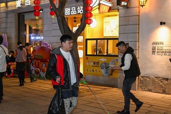 在上下杭,身穿红马甲的志愿者不仅为游客提供指引服务,还随身携带清扫工具,主动清理垃圾,成为流动的风景线。志愿者小林说:“看到地面有纸屑、包装袋,我们顺手就捡起来,游客们也会主动把垃圾扔进垃圾桶。”记者注意到,景区内垃圾桶周边干净整洁。
