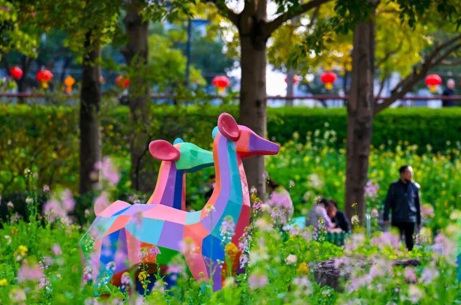 据闽江公园管理处介绍,春节期间彩色油菜花盛花期,观赏可持续至3月上旬。园内还有春日打卡点,方便游人拍照。