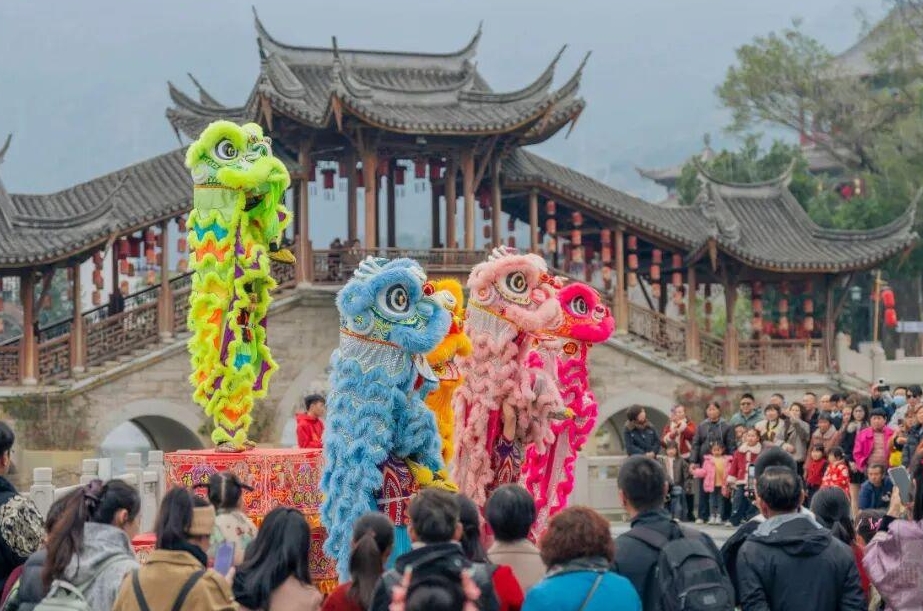 星河鱼灯璀璨开秀,四大主题街区上线,年味雪景大片马上开拍,众多戏精NPC集结,多线互动商票狂欢……春节期间,闽越水镇推出“雪韵闽越•非遗焰彩耀新年”新春主题活动,从正月初一至正月初七,闽越水镇将上演超180场精彩演出,通过民俗体验、沉浸式互动等形式,为市民游客献上一场极具特色的文化盛宴。(记者 谭湘竹 通讯员 邓一飞/文)