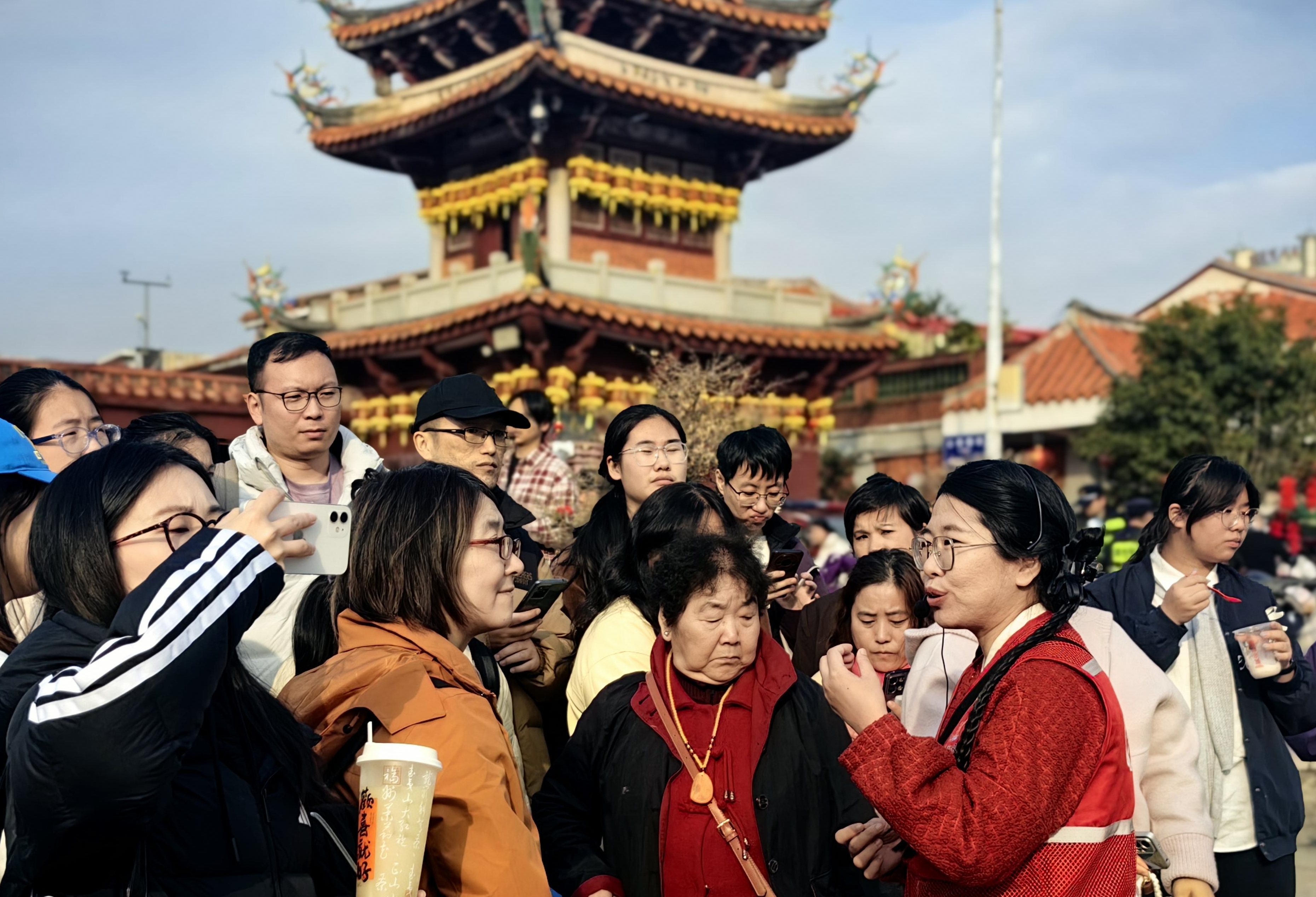 陈玉珊、许瑜是泉州市众多公益讲解员的缩影。正月初一至正月初七(2月17日—23日),由泉州市文化广电和旅游局主办,泉州市文物保护中心承办的“泉州非遗年 生活加点甜”春节公益讲解活动在开元寺、天后宫(德济门遗址)、泉州府文庙及学宫等世遗点举行,为公众提供场次为09:10、10:00、10:45、14:30、16:00的公益讲解服务。全市还实现多点联动,真武庙、洛阳桥、六胜塔等世遗点同步开展特色讲解,形成全域贯通的文旅服务网络。