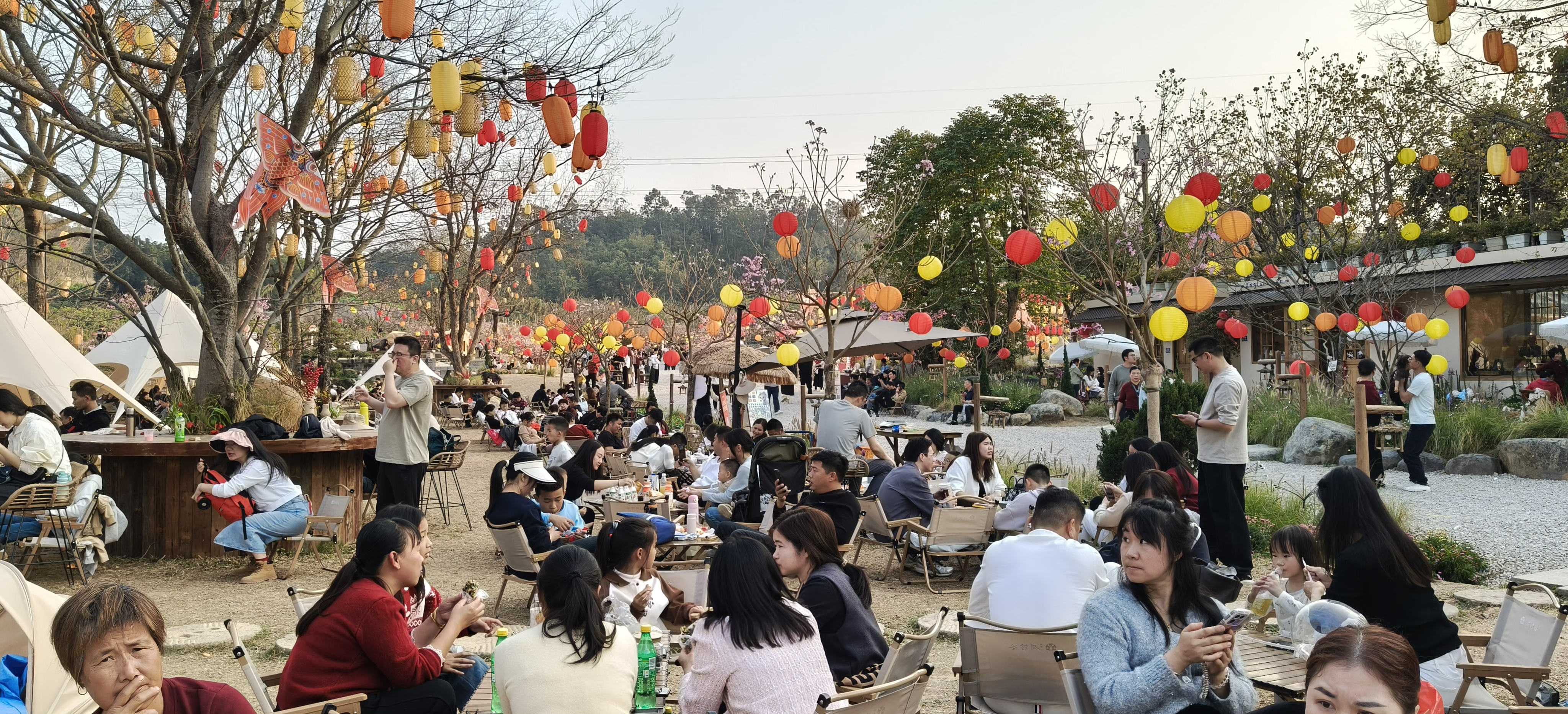 正月初六(2 月 22 日) 下午,厦门市同安区五显镇四林村风铃谷游人如织。红灯笼缀满枝头,露营地座无虚席,游客们在自然野趣中围坐相聚,尽享新春闲暇。乡村文旅新业态持续升温,成为同安新春假期里一道充满烟火气的风景线。