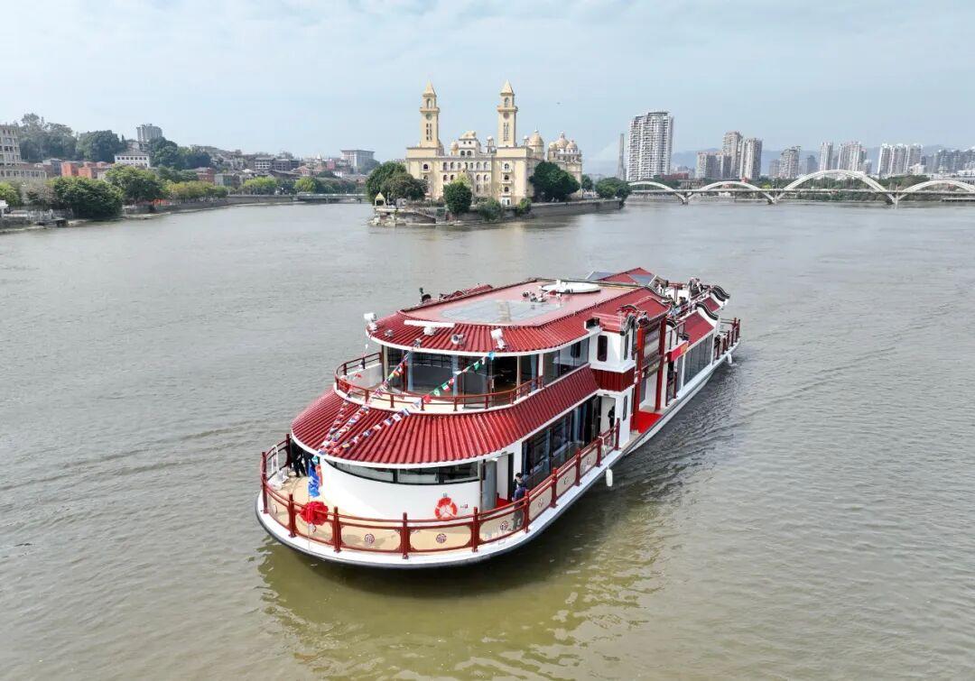 “闽江会客厅”纯电动客船。新华社记者 林善传 摄