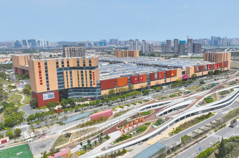晋江市全球鞋服纺织供应链创新中心落地晋江国际鞋纺城,图为鞋纺城鸟瞰图。(晋江国际鞋纺城 供图)