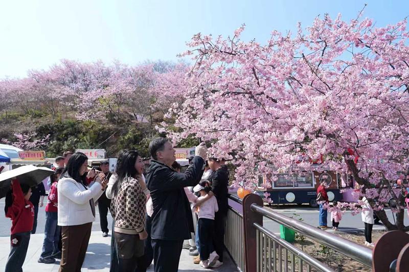 “我就是奔着这里的樱花来的,它层层叠叠,粉嫩嫩的,随便拍就很美,画面仿佛染上了一层粉色的滤镜。”来自江西宁都的游客张女士一边拍照一边激动地说。