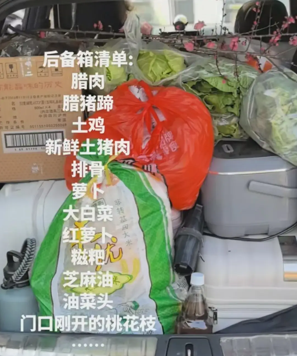 随着春节假期结束,社交媒体上一年一度的“后备箱摄影大赛”又温情上演。一盒青团、几块腊肉、一捆带着泥土的青菜、几枝初绽的桃花……父母总嫌汽车后备箱空间太小,恨不得把整个“家”都塞进这方寸之间。后备箱塞得满满当当的何止是年货,更是亲人的牵挂和化不开的乡愁。