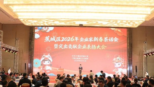 2月24日,丙午马年首个工作日,宁德蕉城区召开2026年企业家新春茶话会暨突出贡献企业表扬大会,以这场“新春第一会”凝聚政企发展共识,吹响“十五五”开局之年高质量发展冲锋号。活动现场百余名企业家代表齐聚一堂、共话发展。