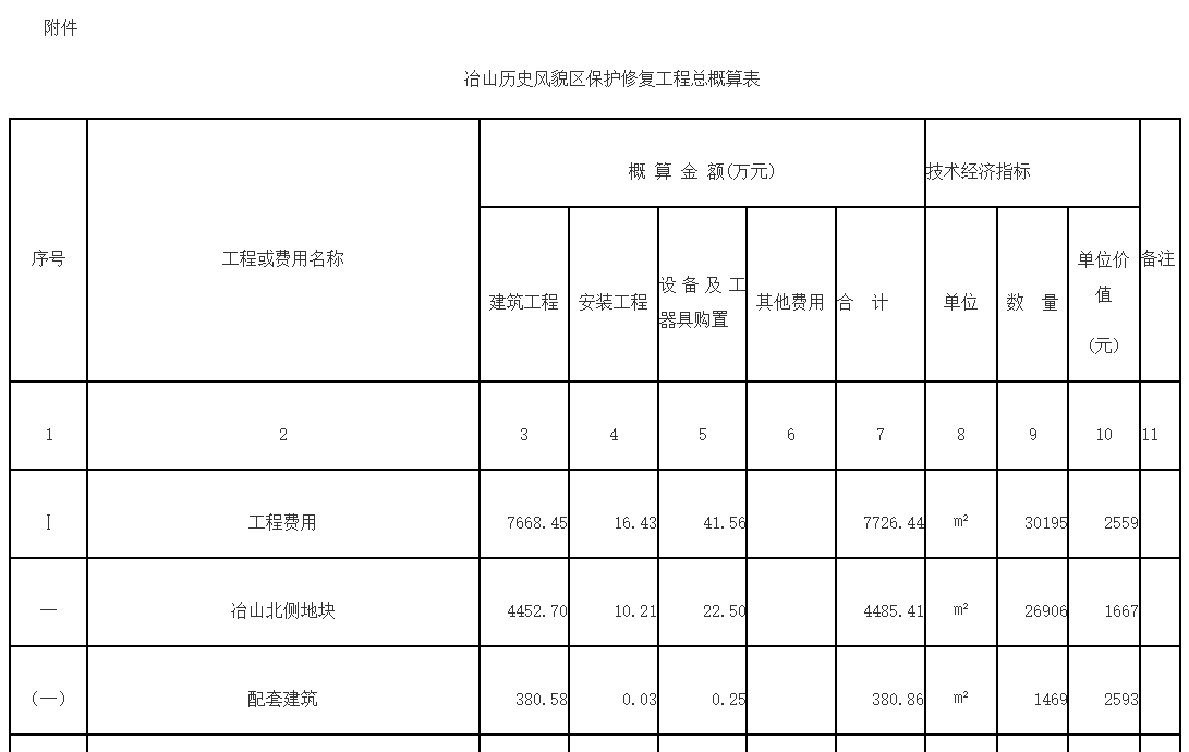你委《关于审批冶山历史风貌区保护修复工程项目初步设计及概算的请示》(榕名城委〔2025〕94号)及有关附件收悉。根据市政府办公厅文件办理告知单(编号:GZ2025CJ00144号)精神,为切实保护冶山历史风貌区的文化遗产、宣扬闽都文化,经研究,原则同意冶山历史风貌区保护修复工程项目初步设计方案和工程概算,具体批复如下: