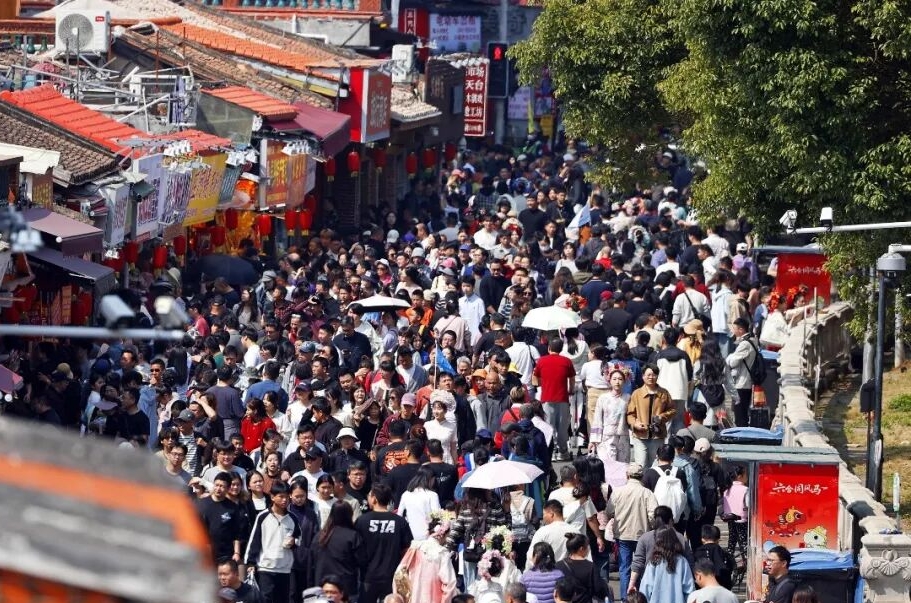 2月22日,长假进入尾声,泉州西街依旧人群熙攘。(泉州晚报社融媒体记者陈晓东 摄)