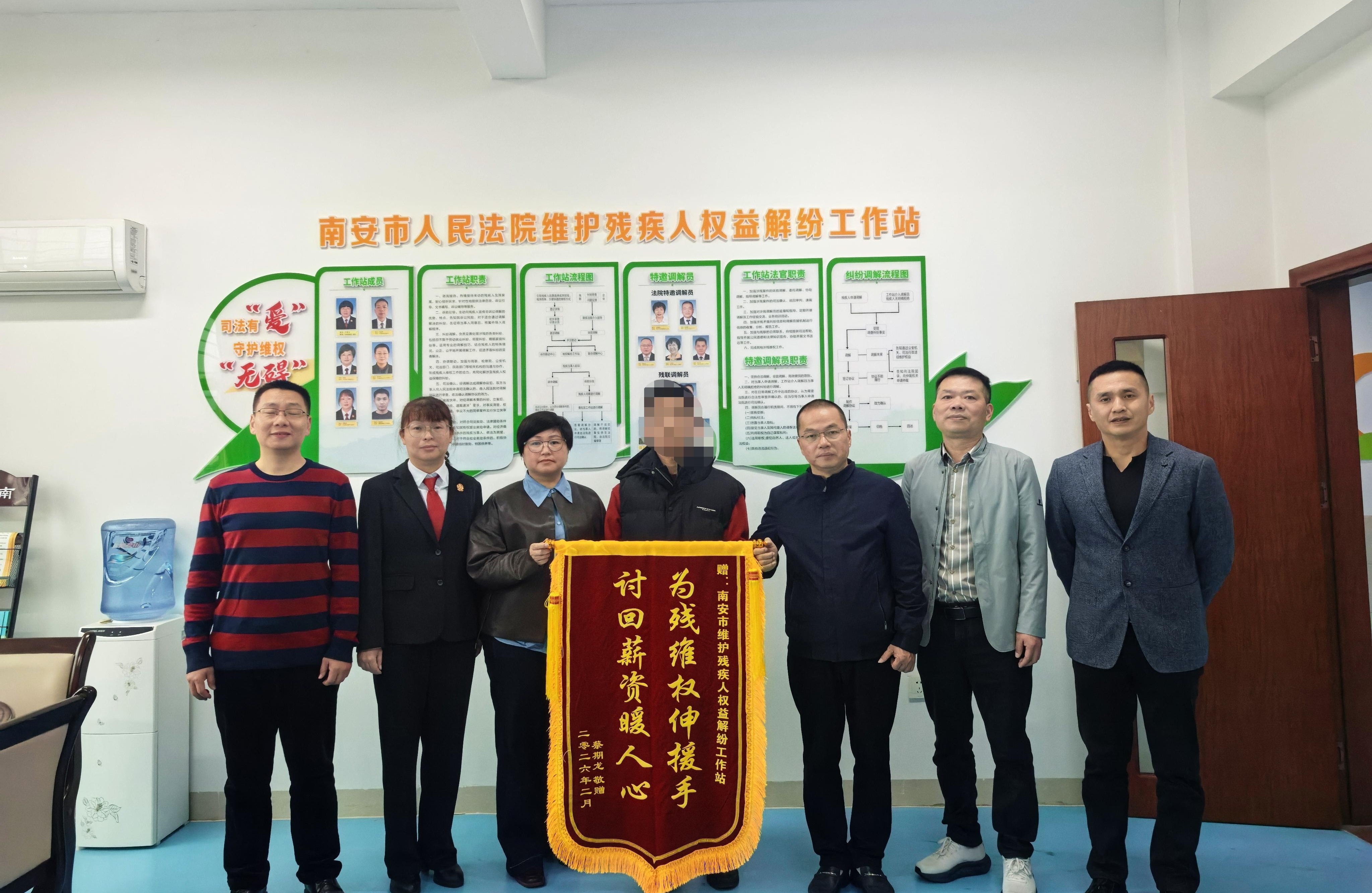 “辛苦工作这么久,工资一直讨不回来,多亏了这个解纷工作站!”回忆起维权过程历,蔡某龙难掩激动,作为弱势群体,在务工过程中遭遇企业拖欠工资,多次自行讨要无果,维权之路屡屡碰壁。由于身体障碍、法律知识相对薄弱、诉讼程序面临诸多不便等诸多原因,残疾人在欠薪维权中往往步履维艰。迟迟拿不到辛苦钱的他,曾一度陷入无助与焦虑之中。