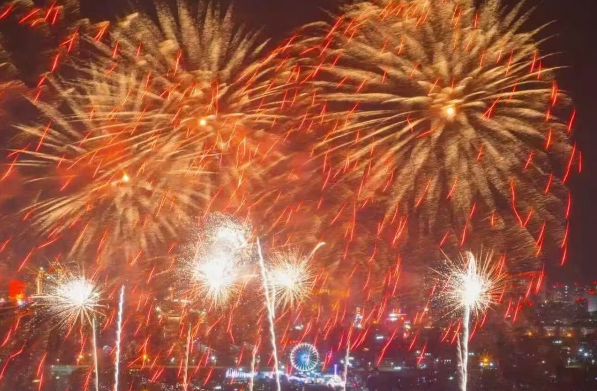本届烟花秀全面升级,不仅有首秀“蓝色流星雨”“金色瀑布”等新款烟花,更有“七彩祥云”特效返场,同时还引入吉尼斯世界纪录同款烟花及国际获奖礼花弹,打造沉浸式光影盛宴。