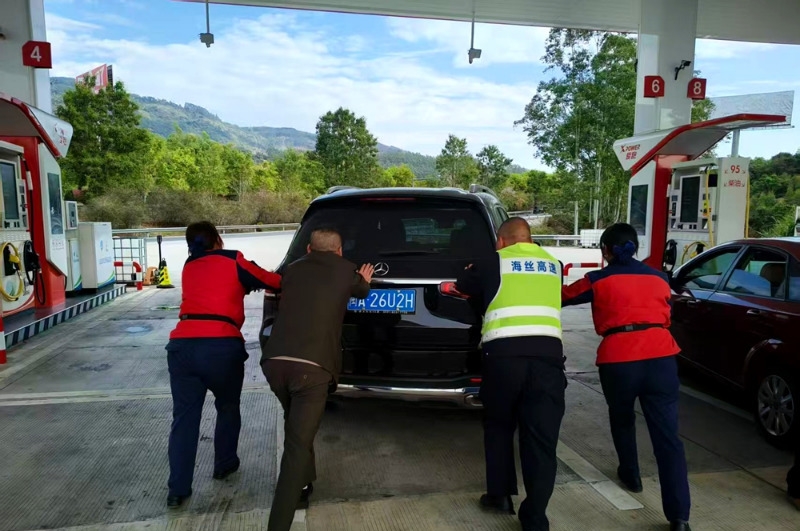 2月9日16时,兴泰服务区B区入口处,一辆私家车因燃油耗尽抛锚在入口匝道,存在较大安全隐患。正在巡逻的管理人员发现险情后,迅速组织保安及加油站工作人员展开救援。大家化身“推车侠”,分工协作、合力将车辆一步步推行至前方的加油站,及时化解险情,保障了道路通行秩序。工作人员的快速反应与热心相助,让车主倍感温暖。2月24日,兴泰服务区收到了来自车主的感谢信和锦旗,字里行间赞扬工作人员乐于助人、履职尽责、反应迅速的职业素养,以最直接的方式回馈这份旅途温暖。