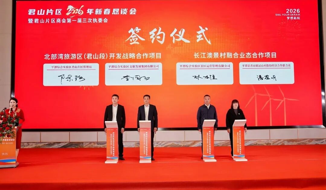 签约仪式上,君山片区局与区文旅集团就北部湾旅游区(君山段)开发、长江澳景村融合业态等项目签订合作框架协议。合作聚焦滨海业态发展、交通接驳优化、核心景区提质开发三大方向,通过深度整合区域山海文旅资源、盘活乡村特色禀赋,进一步丰富亲海休闲体验、完善旅游交通配套、提升景区运营品质,构建“以景带村、以村促景、景村共荣”的联动发展格局。