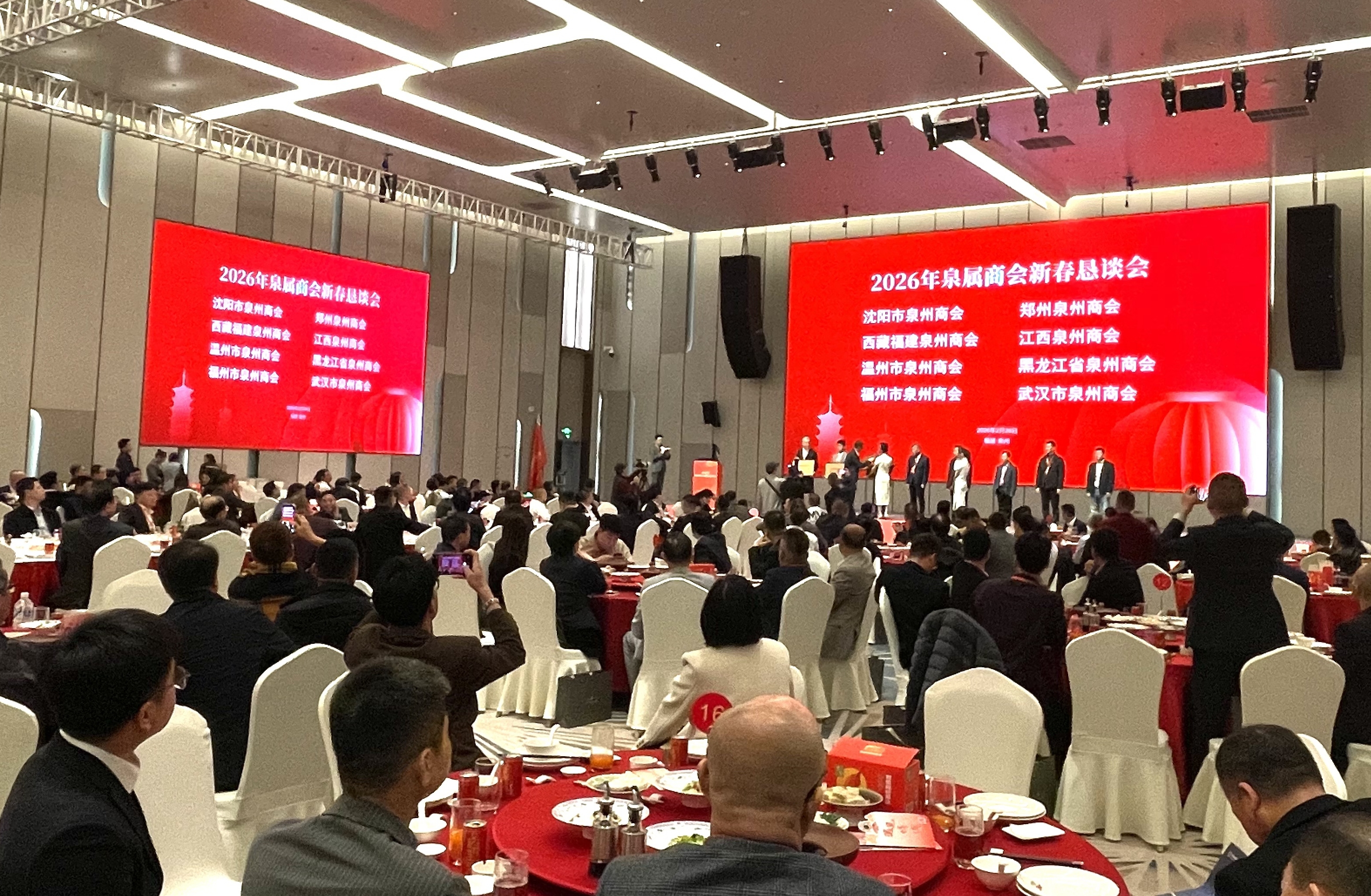 福建日报·新福建客户端3月1日讯(记者 庄钊滢 通讯员 陈森莹)为引导异地泉商发挥优势作用,2月28日晚,中共泉州市委统战部、泉州市工商业联合会(总商会)共同举办2026泉属商会新春恳谈会。近200家异地泉籍商会会长及代表齐聚一堂,于此间畅叙乡情、共商发展,探讨如何凝聚泉商力量以助力泉州加快“破圈”升级、实现高质量发展。