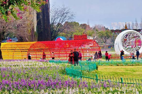 花海公园,紫色、粉色的紫罗兰尽显春日浪漫