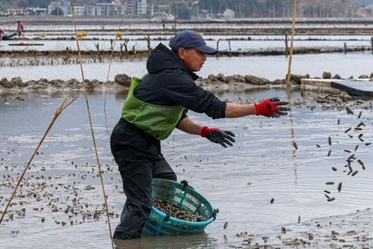 近日,记者在浦口镇中麻村的码头看到,海蛏养殖户们手脚麻利,将一筐筐鲜嫩的蛏苗整齐放至运输船上。待潮水退至适宜的潮位,他们便驾驶着满载蛏苗的船只,驶向辽阔的浅海养殖区域,为新一年的丰收撒下蛏苗。