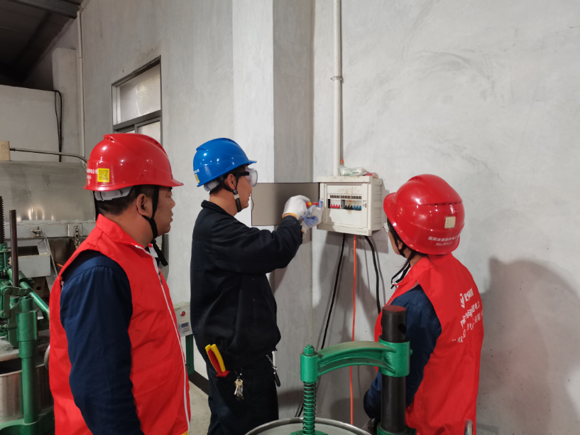 活动中,服务队队员们向村民和村内加工厂发放安全用电宣传手册,面对面讲解安全用电、防火避险、应急处置等知识,提升群众安全防范与自救互救能力。队员们细致检查加工厂的生产用电线路、设备运行情况,重点排查线路老化、私拉乱接等隐患,现场提出整改建议,筑牢企业安全生产防线。加工厂的负责人连声道谢:“你们上门排查太及时了,这下我们用电放心多了。”