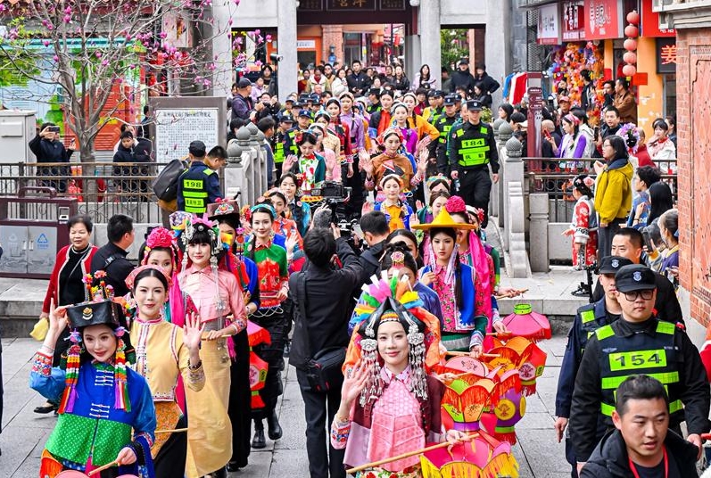 3月3日,正月十五元宵佳节,泉州古城西街与中山路迎来一场别开生面的文化快闪活动——10位国际超模携手百位惠安女,以惠安女传统服饰为媒,开展日间踩街、走秀及夜间彩灯巡游,吸引众多市民游客驻足互动。