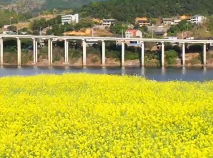 连日来,闽清县梅溪镇北溪公园内的油菜花进入盛花期。