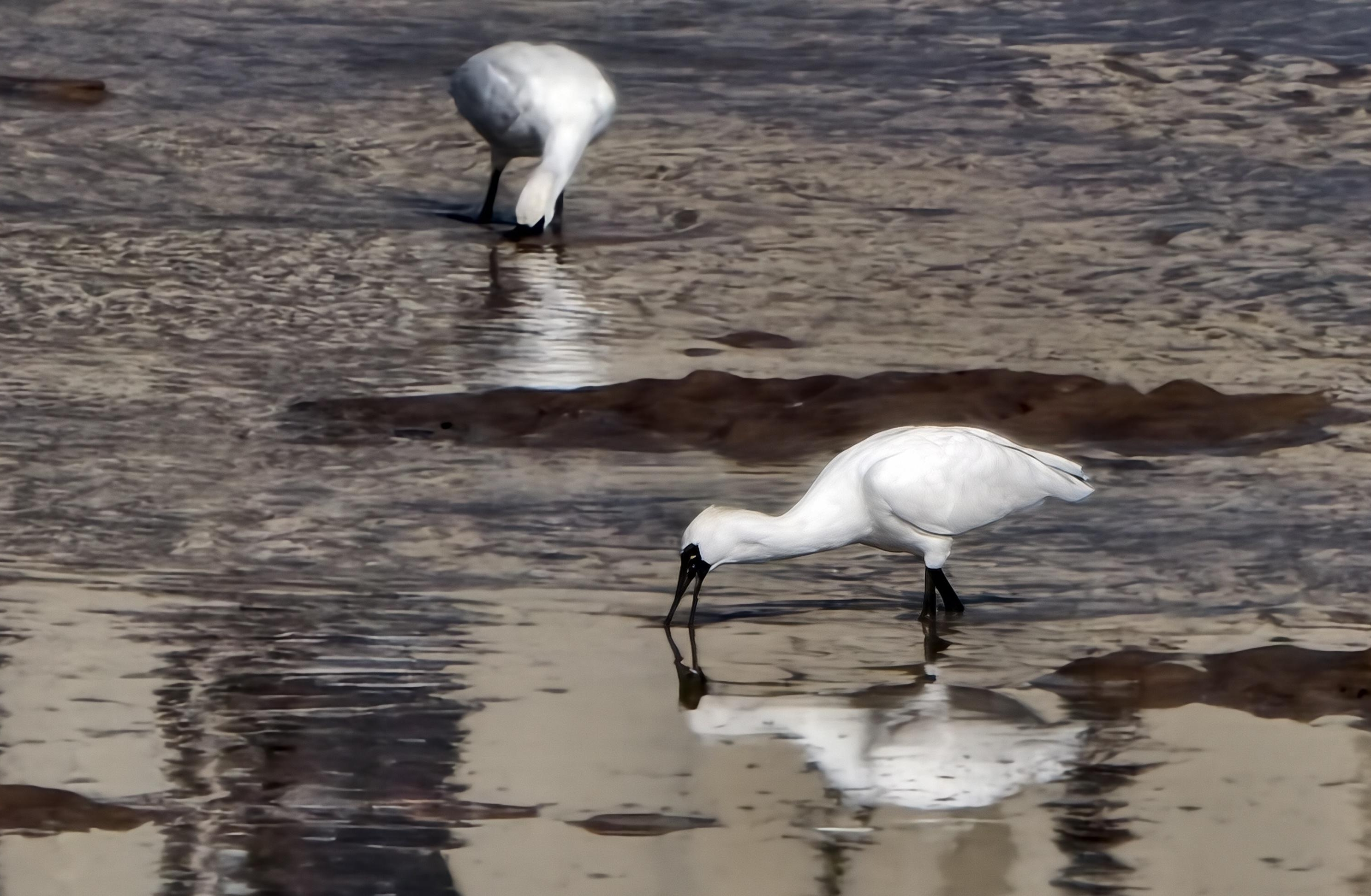 鸟儿在浅滩觅食。