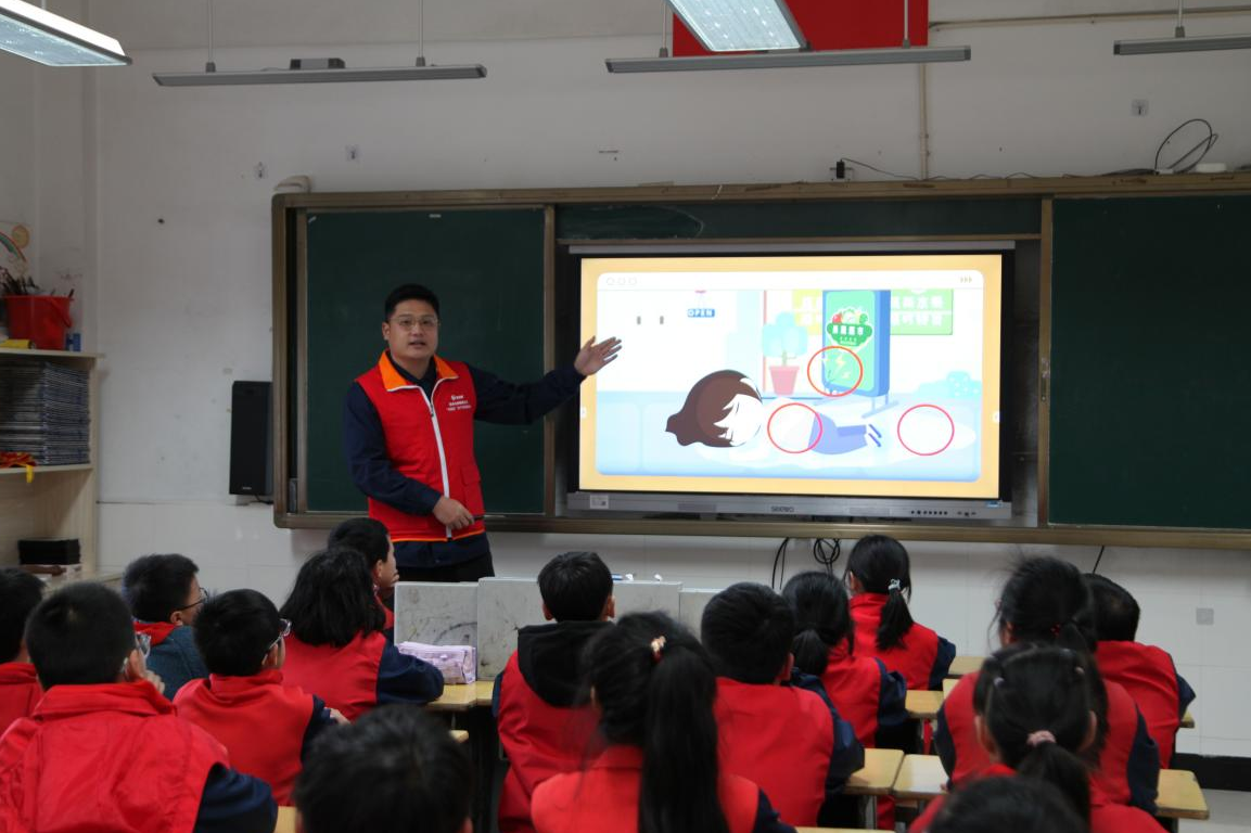 魏宏龙化身“电老师”,结合电力行业特点,通过生动的动画课件、趣味短视频等形式,向同学们深入浅出地介绍了电的来源、用途及其潜在的危险性。他用通俗易懂的语言,将复杂的电力知识转化为孩子们易于理解的内容,进一步拉近了电力与生活的距离。课堂上,互动问答环节气氛热烈,学生们踊跃参与,安全用电的种子在心中悄然生根。