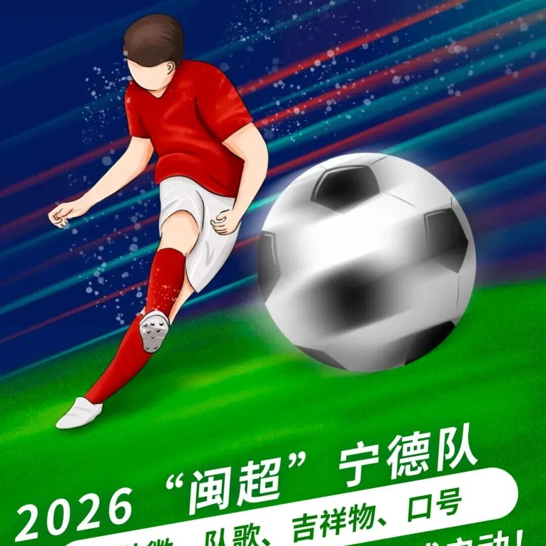 春风吹绿茵,热血赴赛场!2026福建省城市足球联赛(简称“闽超”)将于4月正式鸣哨开赛,承载着宁德足球热爱与城市荣光的宁德队,今日正式面向全社会,公开征集队徽设计、队歌创作、口号创作及吉祥物设计作品!