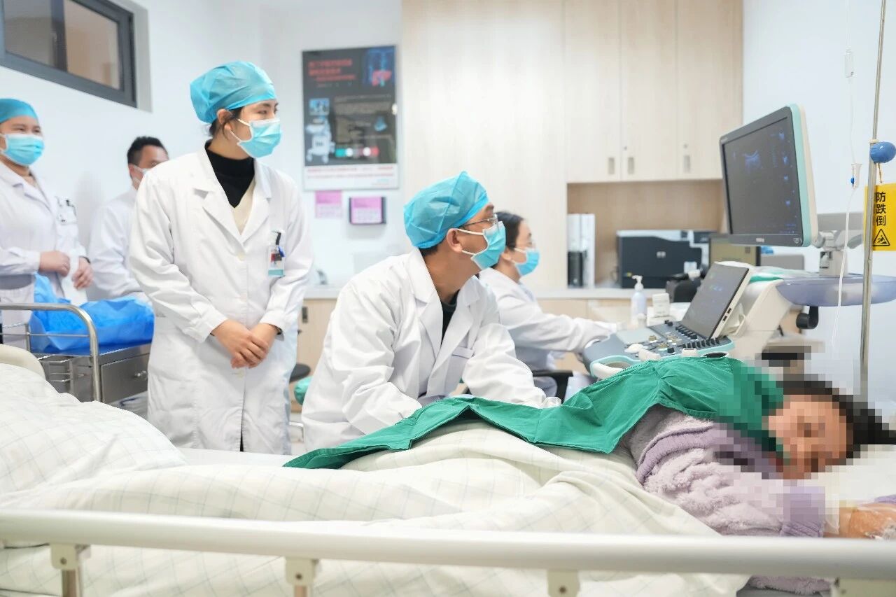 为保障治疗万无一失,小新入院当日,团队便完成全面评估,提前协调彩超室介入团队、药库特殊药品调配、护理转运保障等各环节,打通所有流程节点。治疗当天,超声科郑友平主治医师精准操控探头完成实时定位引导,穿刺、给药全过程顺畅安全。治疗结束后,团队发现小新长期左侧卧位的习惯不利于脊柱康复,随即联动康复科团队床旁指导体位调整,将单次治疗服务延伸至长期功能康复的全周期守护。