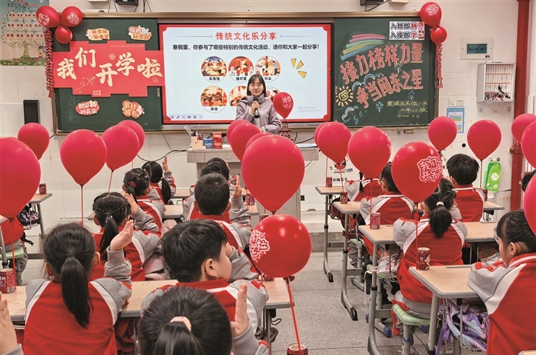 在《马年说马》的朗诵中,同学们尽显龙马精神。恰逢学雷锋纪念日,学校借此开启三月雷锋月系列活动,学生代表作寒假实践汇报并发出学雷锋倡议,让雷锋精神深植童心。