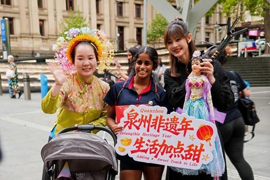 在2026盛世白马新春嘉年华现场,蟳埔簪花围与南音、提线木偶、高甲戏一同亮相,吸引当地民众纷纷驻足体验。小分队还走进城市地标开展非遗快闪,让蟳埔花韵自然融入异国街头。当看到华人企业家、华侨朋友带着当地民众一同簪花、共庆中国新年时,黄丽泳的心中满是自豪与感动。一场跨越山海的相遇,让非遗成为连接中澳民心的温柔纽带。