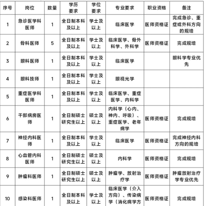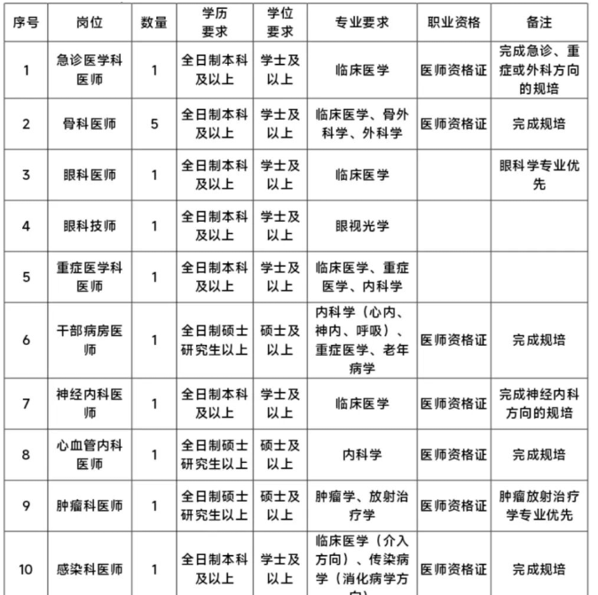 医院2026年第一季度急需岗位社会用工招聘医疗、医技、护理等岗位27人,各岗位详细信息如下: