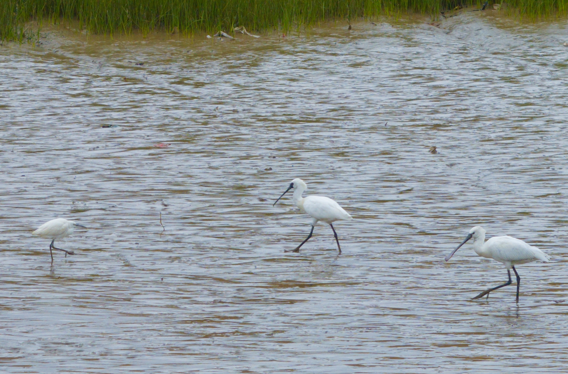 猪母湾湿地紧邻龙江入海口,得天独厚的潮汐条件,孕育出丰饶的滩涂底栖生物,为候鸟停歇觅食提供了天然沃土。随着湿地生态修复工程纵深推进,当地河道疏浚拓宽至300米,水体流动性大幅增强,水质持续稳步提升,昔日杂乱的滩涂,彻底变身东部新城的生态屏障,引得各类珍稀水鸟频频驻足、久久栖息。除了稀客黑脸琵鹭,白鹭、苍鹭、反嘴鹬等常见鸟类更是在此成群嬉戏,勾勒出一幅生机盎然、诗意满满的湿地生态画卷。