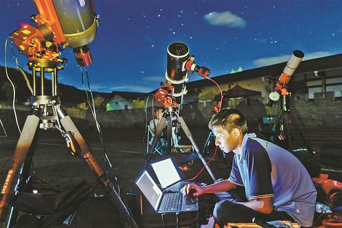 当晚,两人守在两台望远镜前,紧盯电脑屏。林与晨敏锐感知到,恒星亮度在预定时刻之前变暗了一次。“我当时下意识喊了一声‘暗了’。”林与晨回忆。