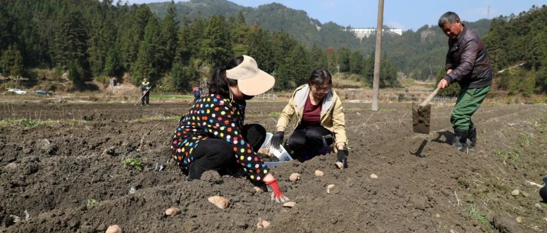 “要保持顶芽优势,保证每个薯块都有芽眼,沾取草木灰促进伤口愈合,土豆种间隔30公分左右……”种植现场,农户们严格按照技术要求,仔细种下处理好的马铃薯种块。