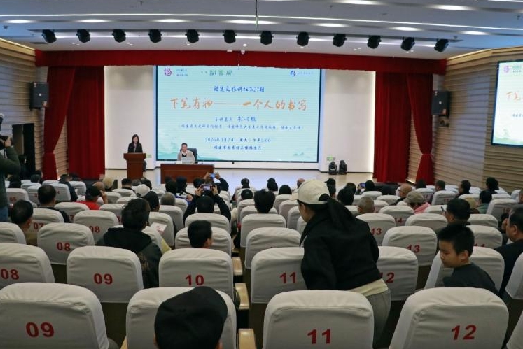 3月7日下午,福建文旅讲坛第27期在福建省图书馆三楼报告厅开讲。福建省文史研究馆馆员、福建师范大学美术学院教授、博士生导师朱以撒担任主讲嘉宾,以《下笔有神——一个人的书写》为题,带领读者从写字的本真要义、书法的艺术境界、文学创作的人文情怀中,感受“书写”的魅力与情调。福建省文学艺术界联合会主席陆开锦等嘉宾参与本场活动,讲座现场还吸引了书法爱好者、市民读者两百余人前来聆听。