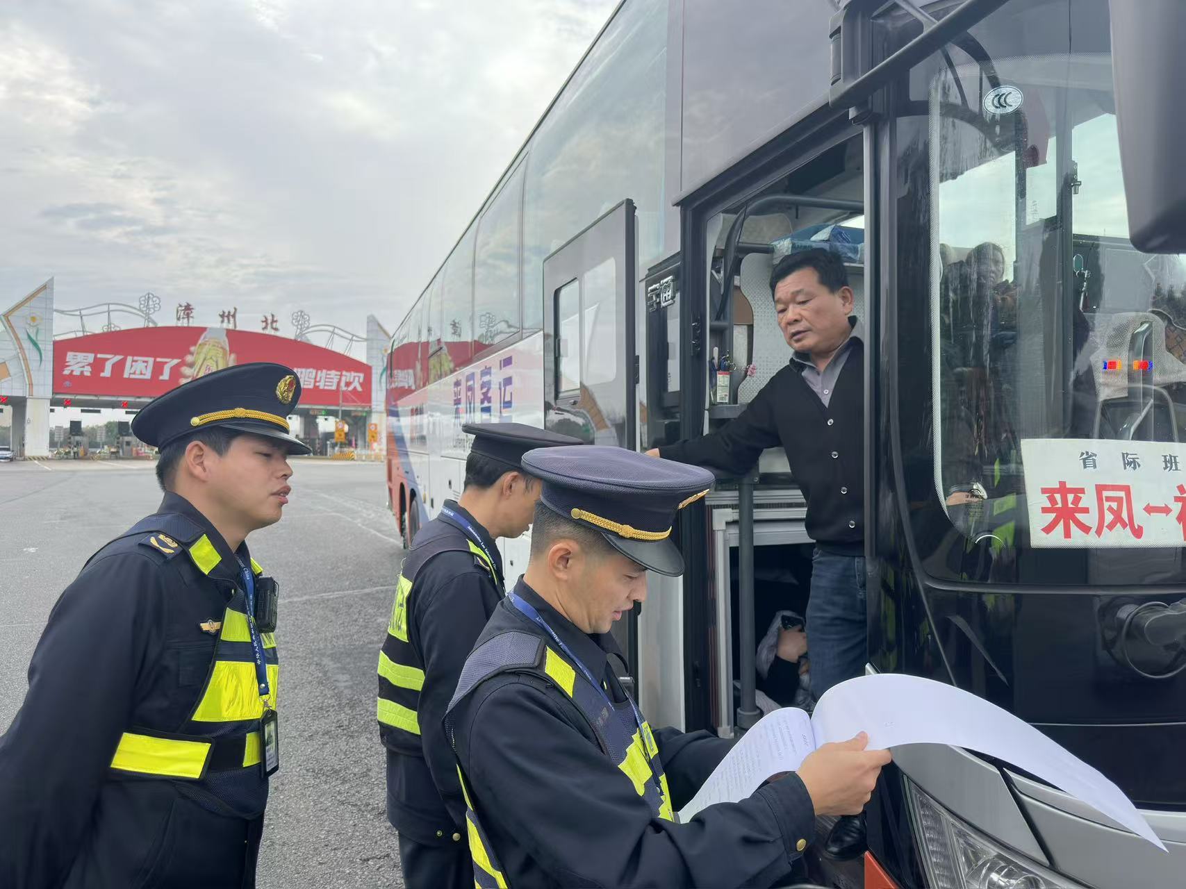 为全力维护辖区道路交通运输市场秩序,守护群众平安顺畅出行,漳州市交通运输综合执法支队聚焦重点车辆、重点路段,持续加大对漳州高速北的联合执法力度,近日,市交通执法支队执法三大队执法人员在漳州高速北重点区域巡查中依法查获一起大客车不按照包车客运标志牌载明的事项运行的违法典型案件,以精准执法警示行业、规范客运市场,为复工复产筑牢安全法治屏障。