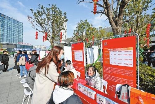 2月9日上午,在福州火车站南广场,企业招工人员与求职者面对面沟通。