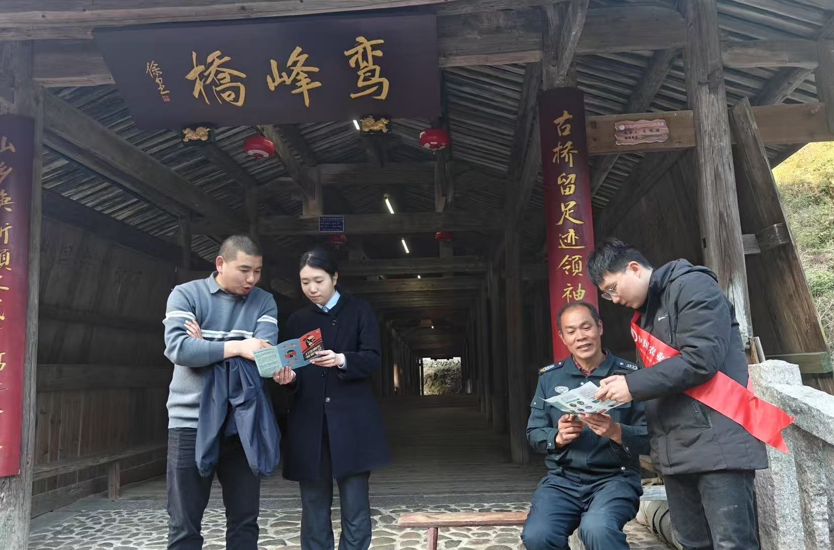 在下党卫生院门口,宣传队向就诊群众和医护人员发放《金融消费者权益保护手册》,讲解个人信息保护、理性投资等知识。针对老年群体,工作人员现场演示如何识别虚假金融广告,提醒“不轻信、不透露、不转账”。在鸾峰桥古廊桥内,宣传队向游客和居民普及“征信修复”“虚拟货币”等金融知识,通过以案说险方式揭露非法金融活动的危害性。