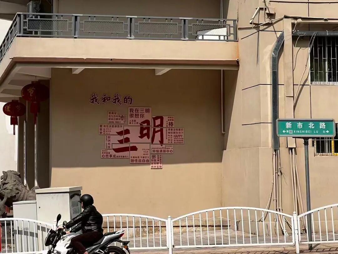 浅米色墙上,围绕“三明”二字,数十块写满心声的红色牌匾错落展开——“我在三明很想你”“人生都是上上签”“随性且自由”……这不止是一面墙,更是一个巨大的、开放式的“心情留言板”。