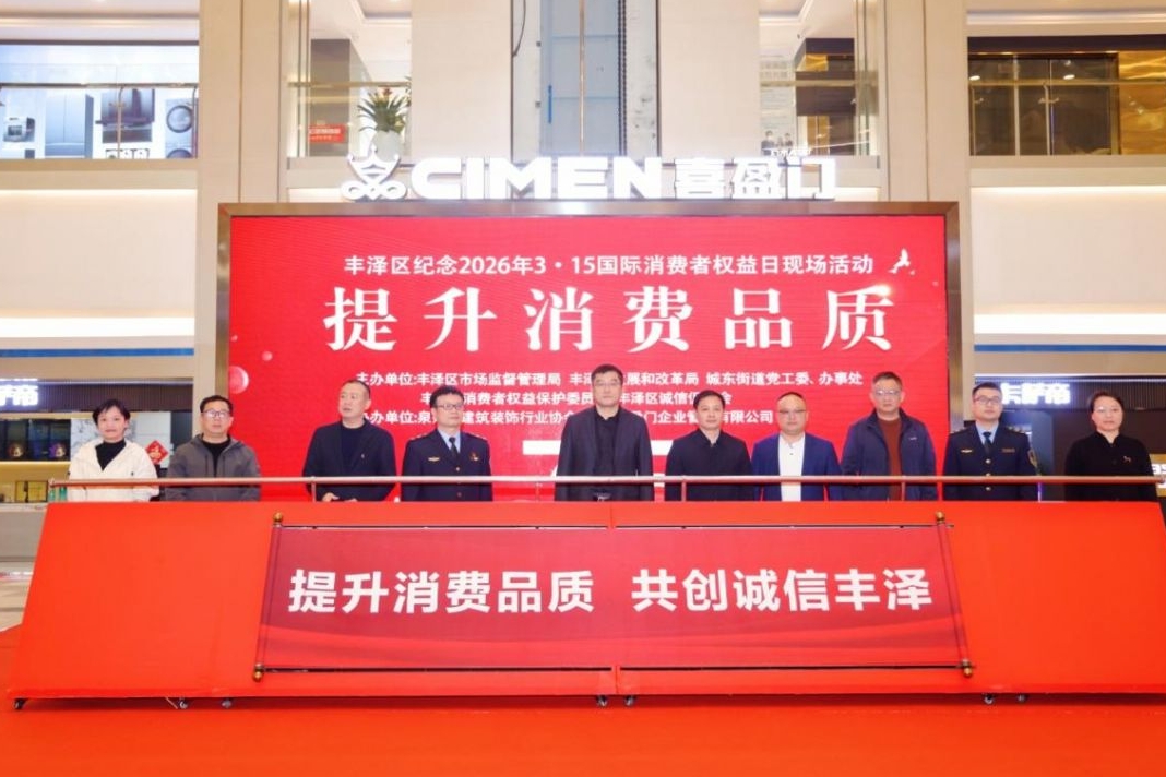 闽南网3月13日讯(闽南网 黄丽君)3月13日上午,泉州市丰泽区纪念2026年“3·15”国际消费者权益日活动,在喜盈门国际建材家居(泉州)总部店举办。活动以“提升消费品质 共创诚信丰泽”为主题,旨在强化消费维权、优化消费环境、提振消费信心,为经济高质量发展注入动能。