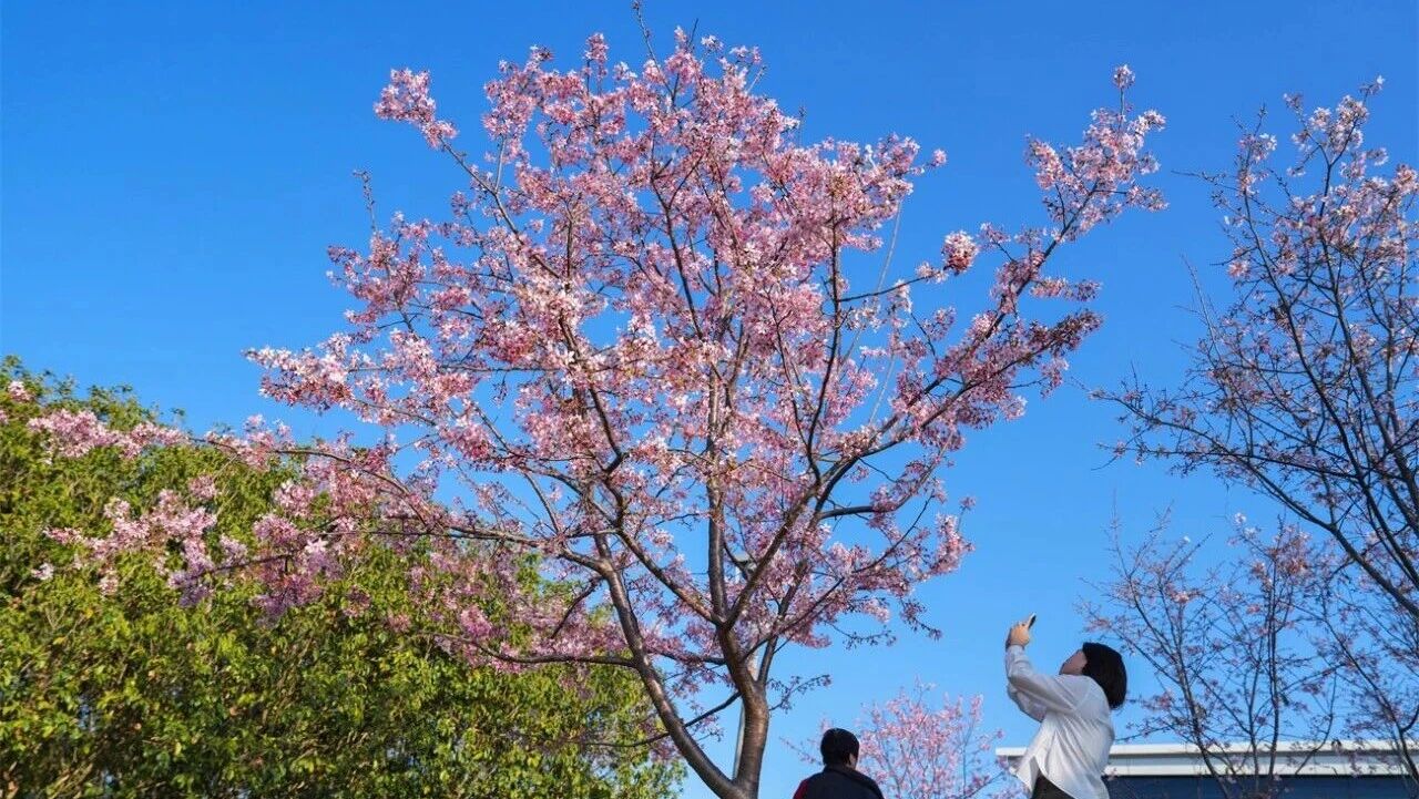 据了解,这两个品种的福建山樱花于前年冬季栽种,种植的树苗已在苗圃中经过多年培育。过去两年里,它们逐渐适应了金鸡山公园的气候与环境,今年状态良好,花期可持续至3月底。